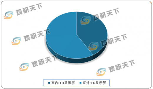 我國(guó)LED顯示屏室內(nèi)外應(yīng)用市場(chǎng)占比情況